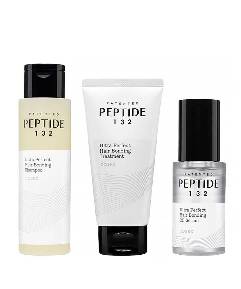 طقم العناية الشعر ببتيد-132 لإصلاح الروابط (شامبو + تريتمنت + سيروم زيتي) من كوزركس